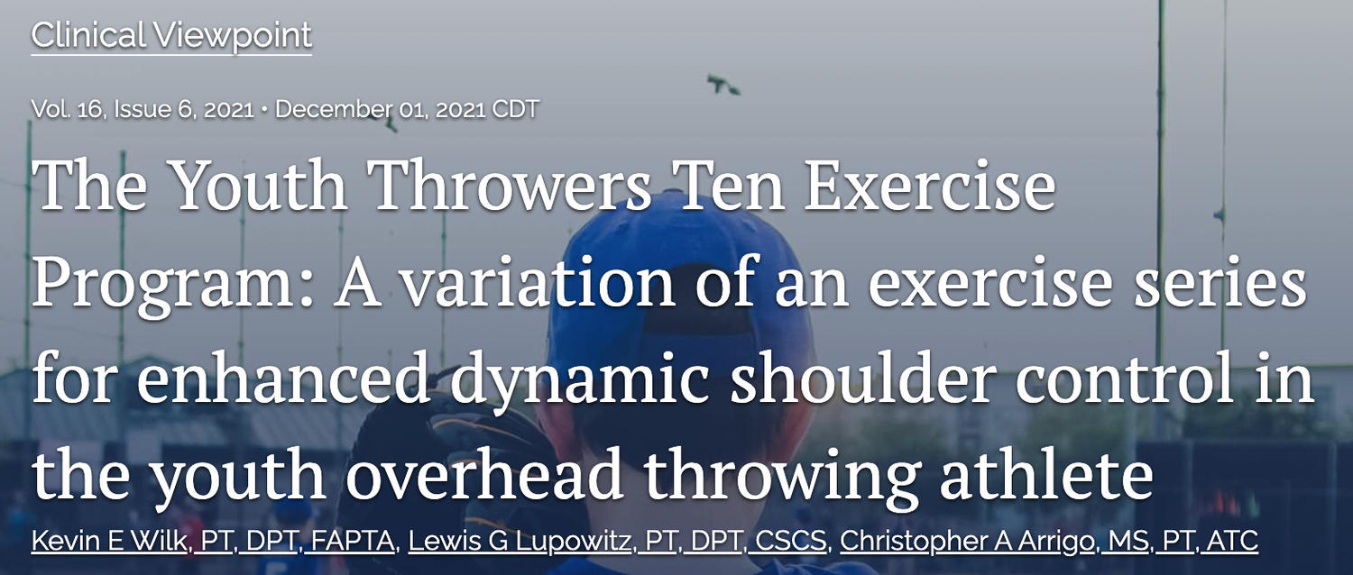 Co-authored by Dr. Lewis Lupowitz, this publication introduces The Youth Thrower’s Ten Exercise Program—a variation of the classic Thrower’s Ten designed to enhance dynamic shoulder control in developing overhead athletes. The article outlines exercise progressions tailored for youth throwers, emphasizing motor control, stability, and proper movement patterns to support long-term performance and reduce overuse injuries in early sport specialization.