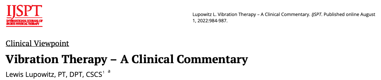 Authored by Dr. Lewis Lupowitz, this clinical commentary published in the International Journal of Sports Physical Therapy examines the mechanisms and applications of vibration therapy in rehabilitation and performance settings. It discusses how vibration can influence neuromuscular activation, circulation, and recovery, while outlining evidence-based strategies for integrating this modality into sports physical therapy practice. The paper bridges emerging research with practical clinical implementation for optimizing athlete outcomes.
